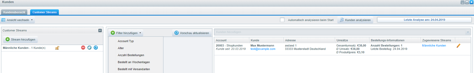 Die Customer Streams rufen wir in der Kundenübersicht im Tab “Customer Streams” auf.